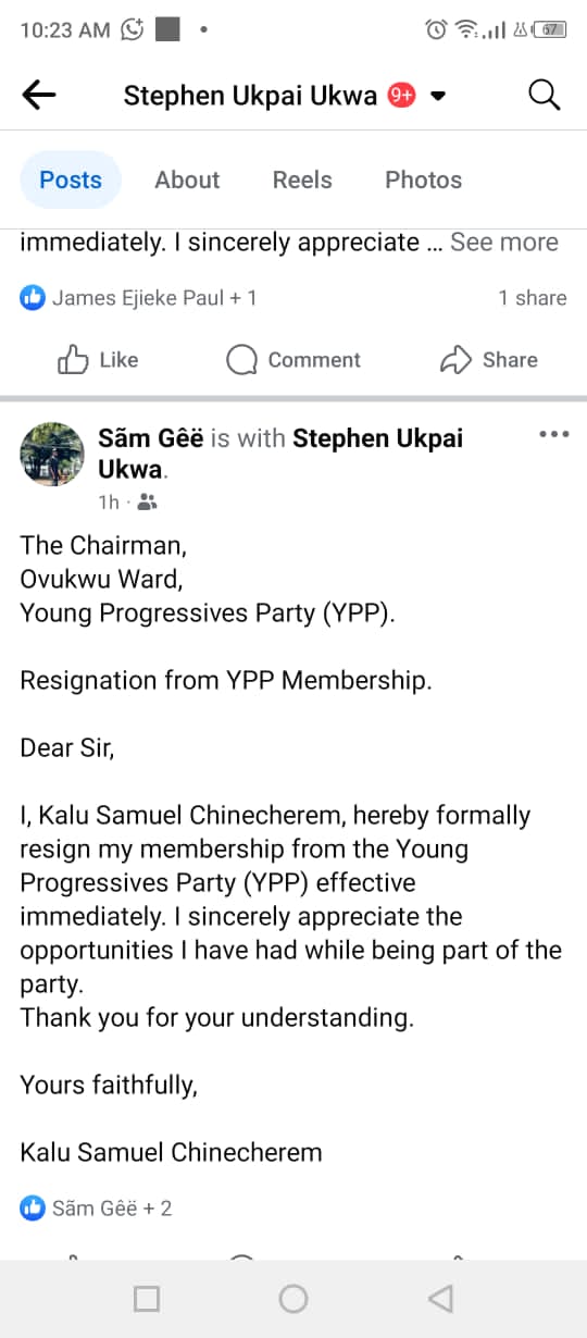 In what appears to be a domino effect, rank-and-file members and ward-level leaders have taken to Facebook this morning to publicly post their own resignation letters, tagging Dr. Stephen Ukpai Ukwa directly — a move that strongly suggests they are following his lead out of the party.