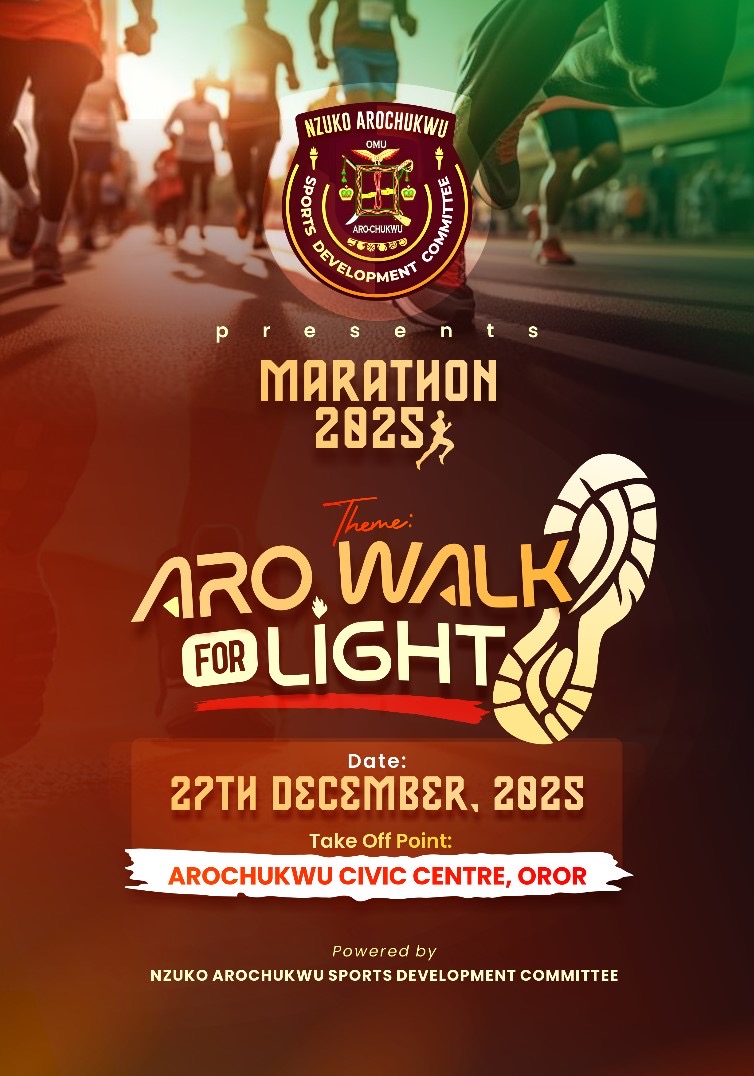Nzuko Arochukwu Sports Development Committee Announces the 2025 “Aro Walk for Light” Marathon The Nzuko Arochukwu Sports Development Committee has officially announced the 2025 edition of its annual marathon, tagged “Aro Walk for Light.” This year’s event promises to be bigger, more energetic, and even more inclusive, as it welcomes participants of all ages who … Read more